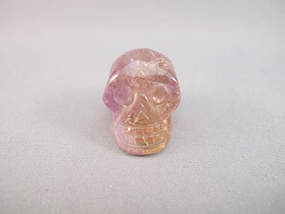 These 1-inch Ametrine crystal skull are hand-carved in Brazil in purple Amethyst with areas of light Citrine