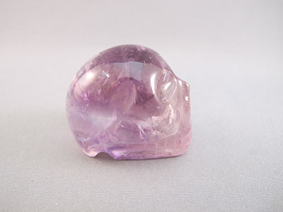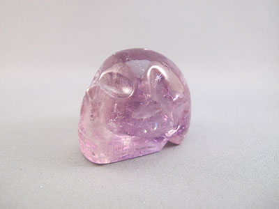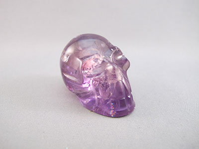 These 2.4-inch Ametrine crystal skulls are about the size of a lime They are clear purple Amethyst with areas of light Citrine
