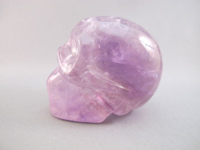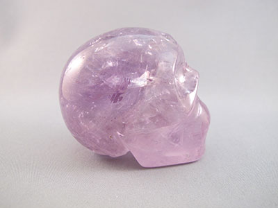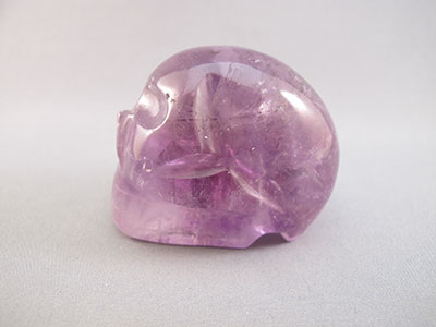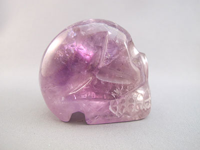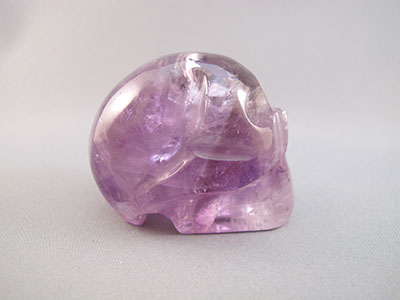 This is one of our most popular size of crystal skulls, each one is about half a pound. These lemon-sized Amethyst crystal skulls are a great size to hold in your palm while meditating, and a nice size for traveling so you can benefit from their power wherever you go.